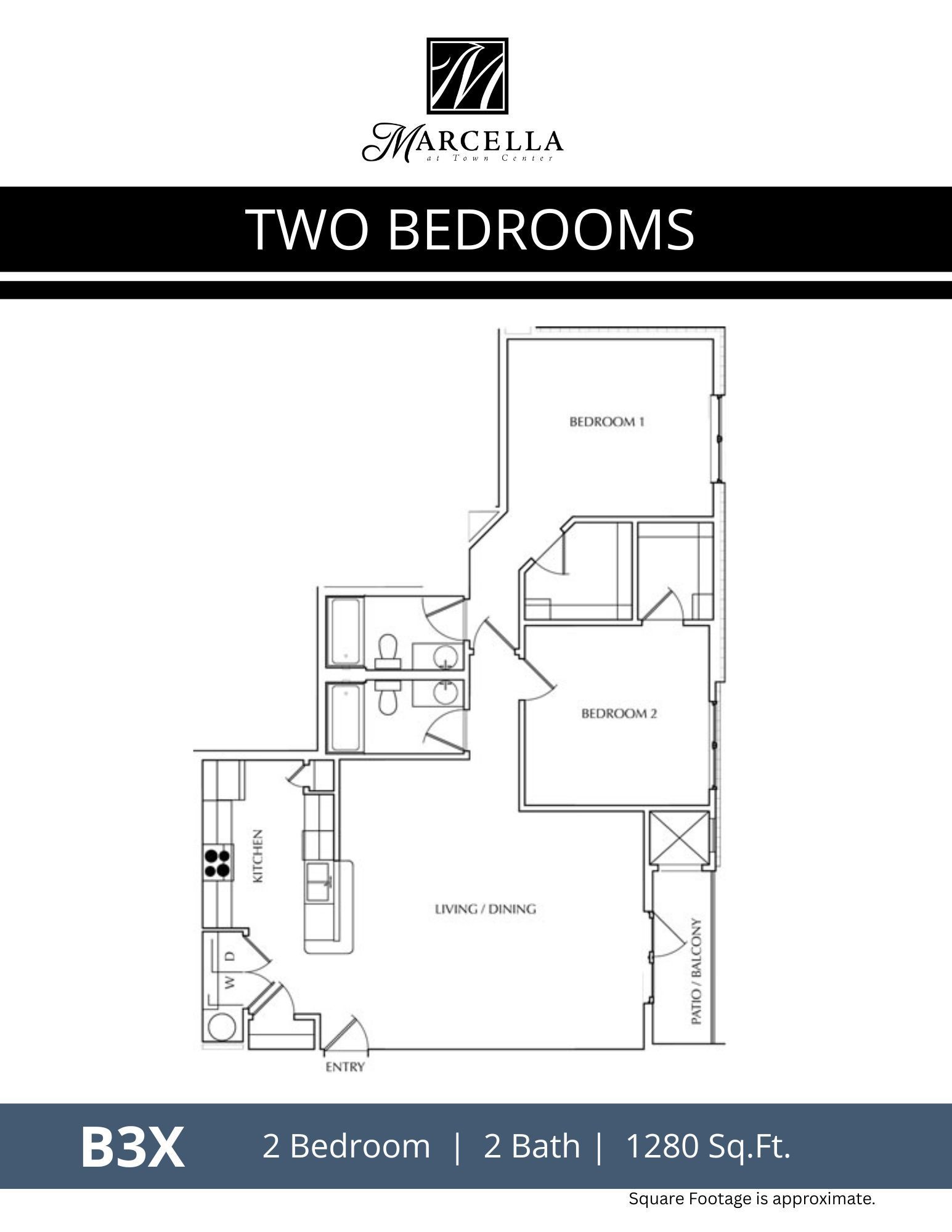 We offer thoughtfully designed one and two-bedroom apartments, as well as three-bedroom townhomes with the added convenience of an attached garage. Explore our floor plans below to find the layout that best suits your needs and lifestyle.