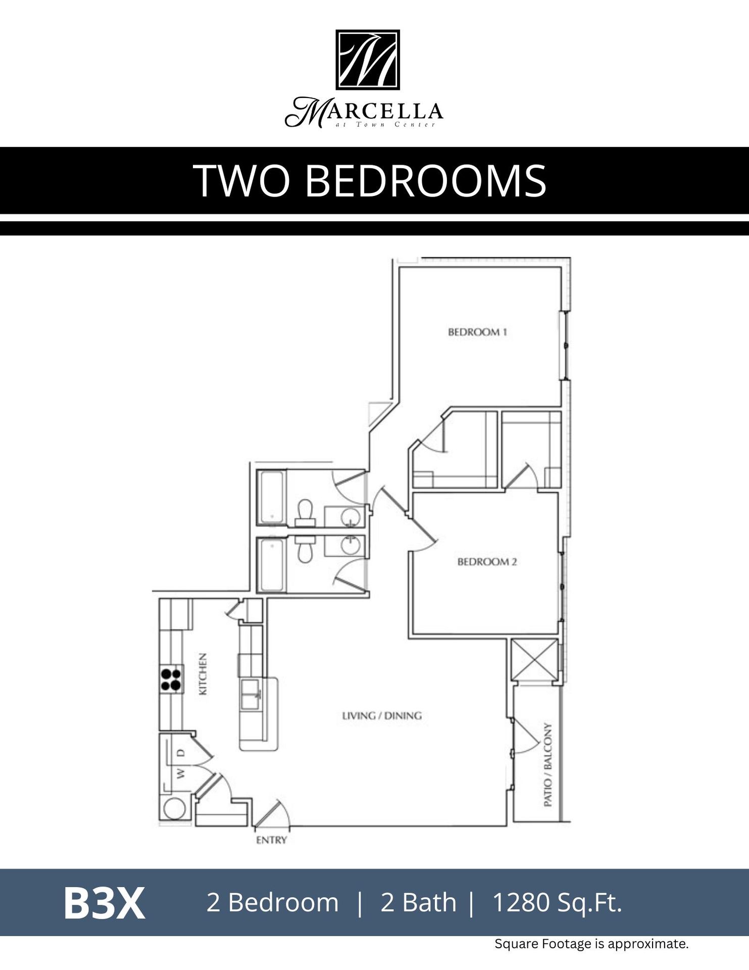 B3X | 2 Bed 2 Bath | 1280 sf | $1867 - $2240 | 6 to 15 month lease terms