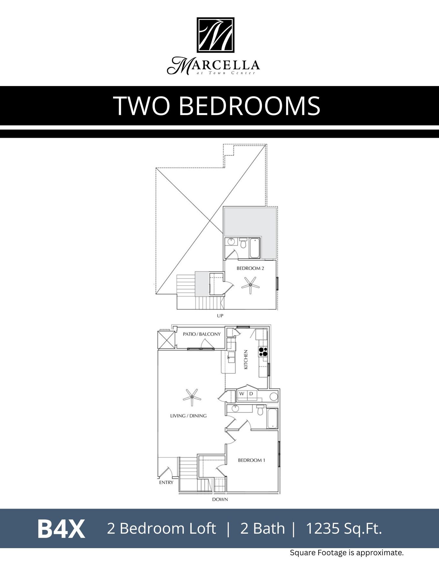 B4X | 2 Bed 2 Bath | 1235 sf | $1869 - $2243 | 6 to 15 month lease terms